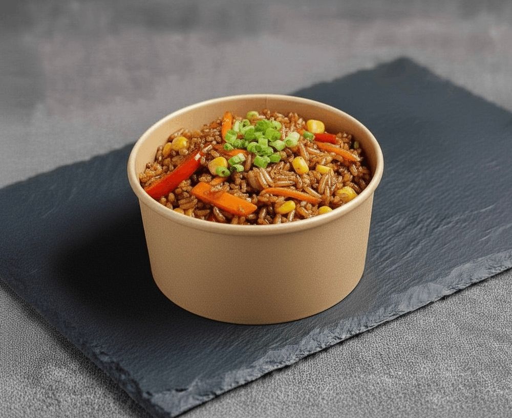 Рис, перец болгарский, морковь, кукуруза, соус терияки, зеленый лук