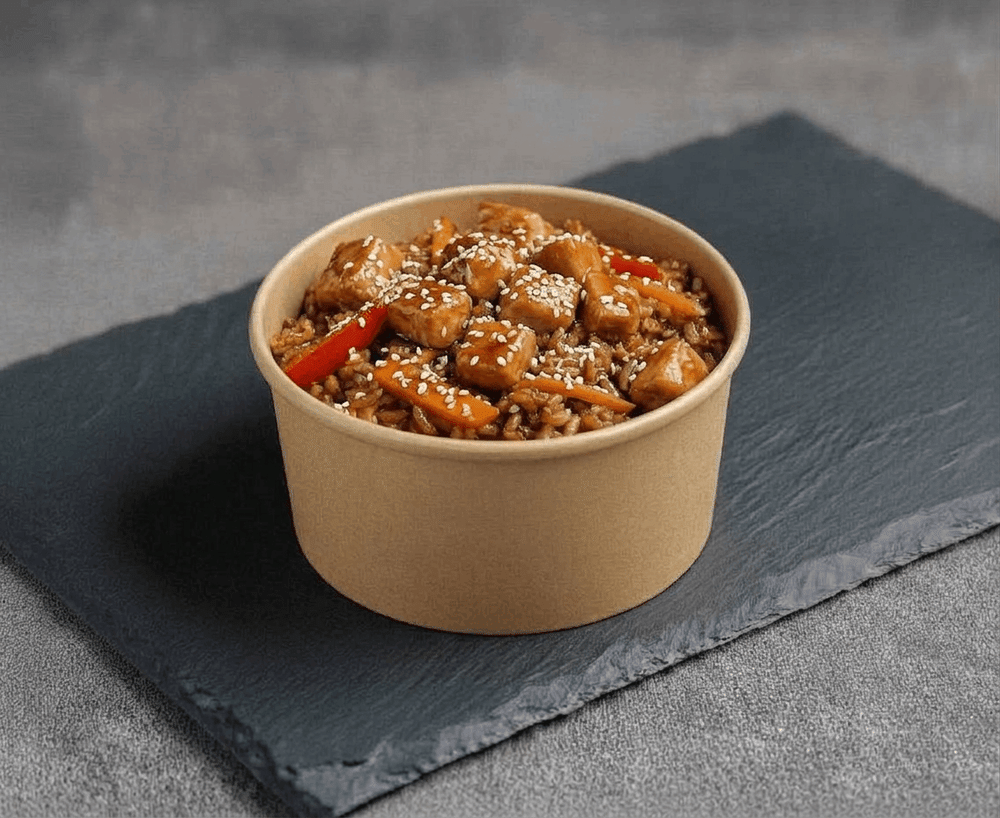 Рис с курицей – это: • Отборная куриная грудка высшего качества • Ароматный японский рис • Идеальное сочетание специй • Сочность и нежность в каждой порции